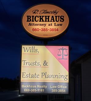 Bickhaus Realty R. Timothy Bickhaus, Broker/Owner 109 N. Missouri St., P.O. Box 481 Macon, MO 63552 Phone 660-385-1181 Fax 660-385-2769 |